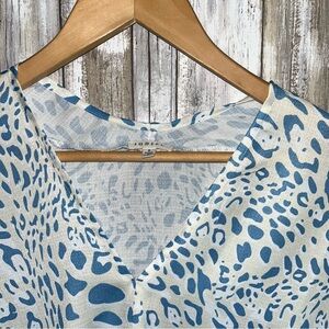Stylish blouse with a blue and white animal print. Perfect for casual outings.