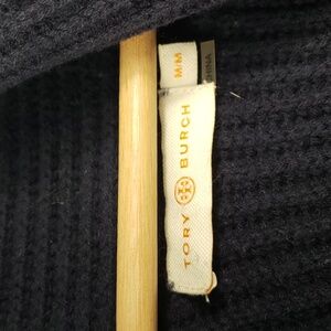 Tory burch Navy Ribbed Knit Cardigan with Belt Wool Coat Size Medium