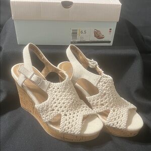 SO Beige Crochet Wedge Sandals