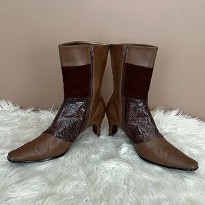 {Bellini} Haddie Snakeskin Leather Boots in Brown - Womens 10