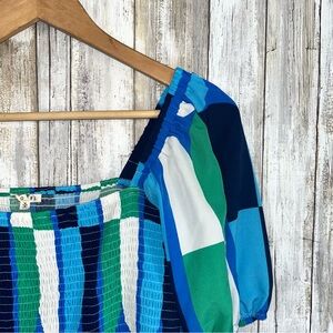 Jodifl Puff Sleeve Smocked Navy Blue Green White Women’s Medium