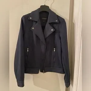 S Faux Suede LiverPool Biker Moto Jacket Navy Blue/Silver Accents NWT New!