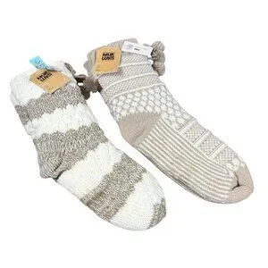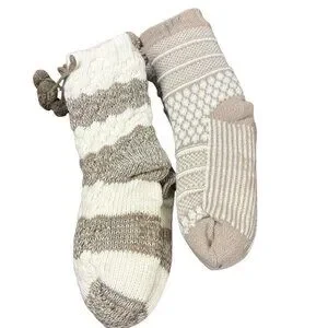 These MUK LUKS textured cabin socks are new with tags and designed for indoor comfort. They feature a plush faux-fur lining and an aloe-infused interior intended to help moisturize dry feet.