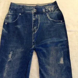 Style Blue leggings w fuax print on legs M NWOT