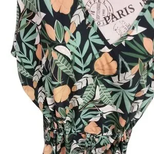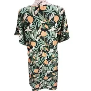 Embrace the casual elegance of this green swim cover up, designed with a tie front for a flattering fit. The v-neckline and short dolman sleeves make it an ideal swim coverup for your next resort getaway. Its lightweight fabric ensures comfort and style in warm weather.