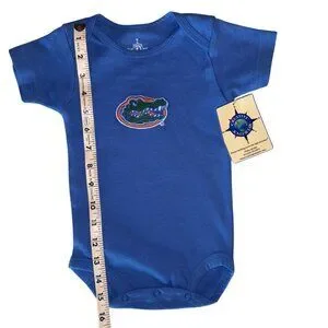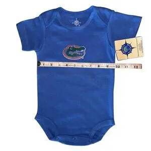 The 3-6 month and 6-9 months Unisex Florida Gators Bodysuit by Creative Knitwear is a soft and comfortable one-piece outfit for young fans of the Florida Gators.