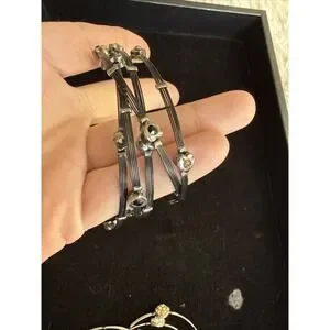 Seasonal Whispers 5 Black, 3 Silvertone Metal Bracelets Sets Crystal Accents5242