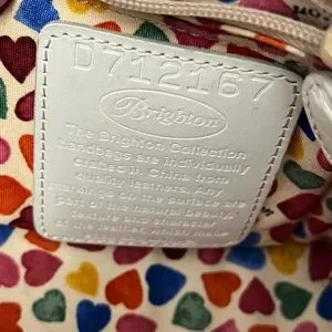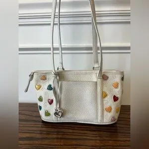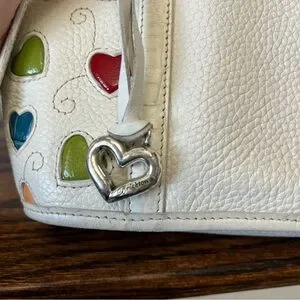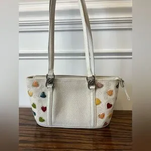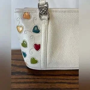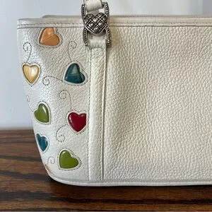 Brighton Fresca White Multicolor Colorful Hearts Leather Shoulder Bag Purse
