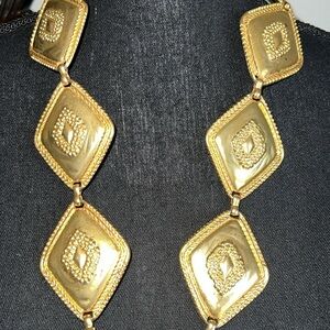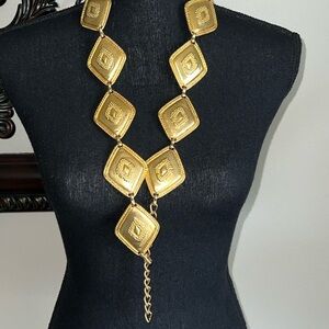 ESCADA Women’s Gilded Gold Tone Ornate Diamond Shaped Heavy Metal Designer Belt