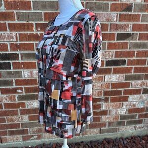 Chic long sleeve top with a bold geometric design. Features a mix of colors for a modern look. Great shape from a non-smoking home.