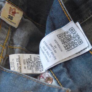 TRUE RELIGION Mens 36 Straight WFLPS Old Multi Blue Denim Jeans Flap Pocket Y2K