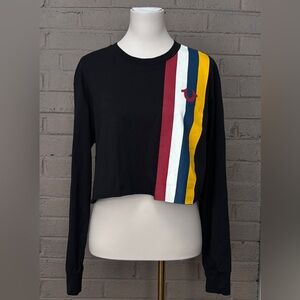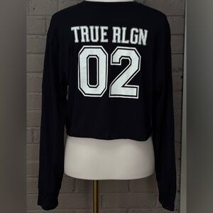 True Religion Black Crop Top with faux leather stripes XL
