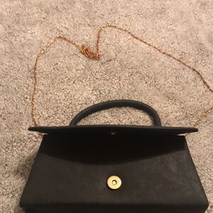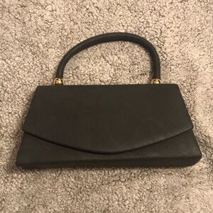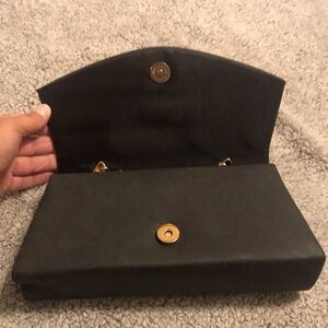 Kendall & James dark Gray faux leather clutch with handle and gold chain