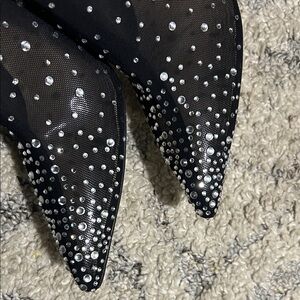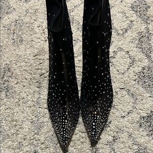 Chic black boots with dazzling rhinestone accents. Perfect for a night out.