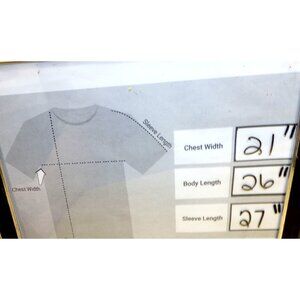Chest width 21", body length 26", sleeve length 27"
