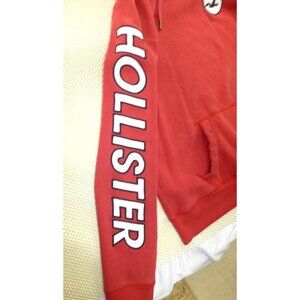 Hollister Red Sleeve Spell Out Graphic Pullover Med Hoodie Soft Fleece Urban Cas