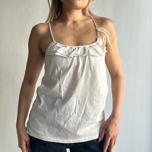 Vintage Hollister Y2K Ruffle Trim Tie Spaghetti Straps Camisole Top in White