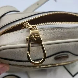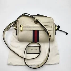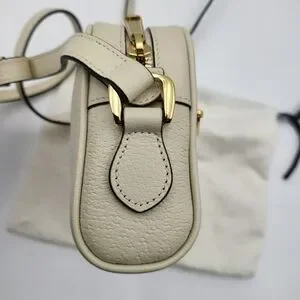 Elevate your style with this elegant Gucci cream crossbody bag. Perfect for any occasion, it features a sleek design with gold accents. The ideal accessory for a chic and sophisticated look.
