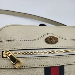 GUCCI Textured Dollar Calfskin Web Mini Ophidia Shoulder Bag Mystic White. Auth.