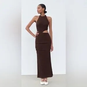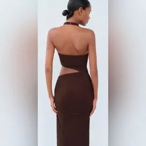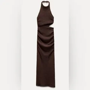 Made of textured fabric with a buttoned halter neck and cut-out details with gathering. A unique and stylish piece for any occasion!