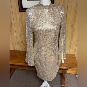 NWT New York & Company Gold Sequin Long Sleeve Dress Size M
