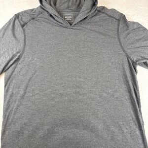 PrAna Hoodie Mens Medium Gray Striped Lightweight Pullover Organic Cotton Jersey
