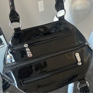Y2K Black and Purple Faux Leather Rose Floral Style Shoulder Bag