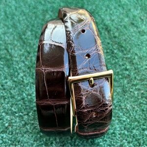 Wehmeiers of New Orleans Vintage Y2K Genuine Alligator Leather Belt in Dark Brown with Brass Buckle