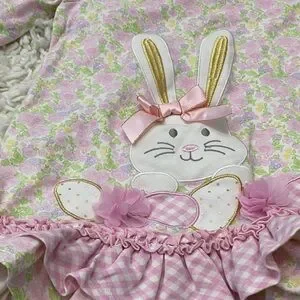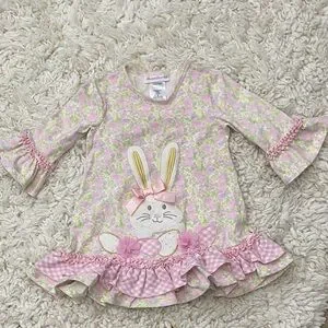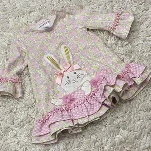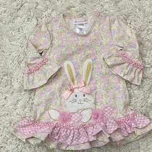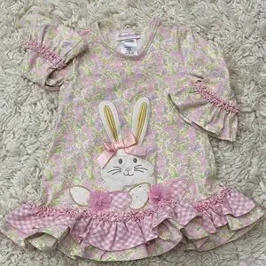 Adorable girls Bonnie Jean size 3T pink floral dress with ruffled sleeves and hem featuring an adorable bunny. Perfect for Easter! Preowned in VGUC. absolutely the most adorable dress
