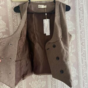 Gorgeous Belle Poque brown tweed vest with black buttons and pockets. Double breast style. Deep lapels, fully lined and buckle in back. NWT