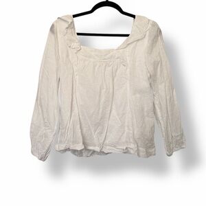 GibsonLook Square Ruffle Long Sleeve Blouse White