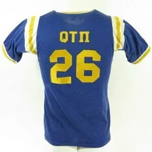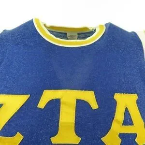 Vintage 50s ZTA Zeta Tau Alpha Jersey TShirt S Blue Sorority Fraternity Applique