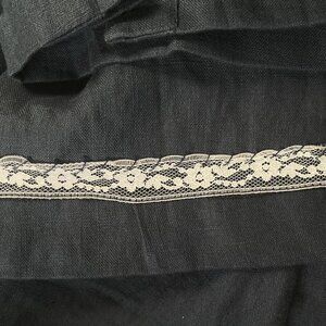 Features: High-waisted, button-down, pleats, floral lace detail