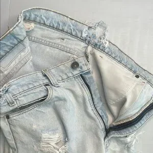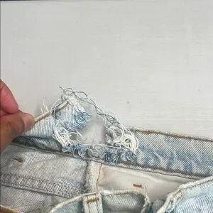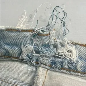 Levi’s Distressed Denim Shorts, used and worn over a handful of times. The item does have wear and tear such as the waist area, part of the waist is ripped and needs to be sewn, the other side of the waist is sewn with blue thread. The label tag is also faded due to the items age. Other than the wear and tear mentioned item is in pretty good condition, zipper works fine, perfect for casual outings, there is some life left. Great pair of shorts for a project/ repurpose!