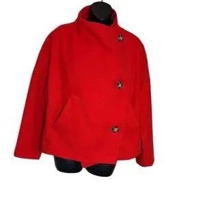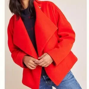 Anthropologie women’s xs Sascha assymetrical button front coat red chic