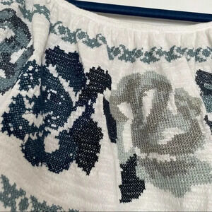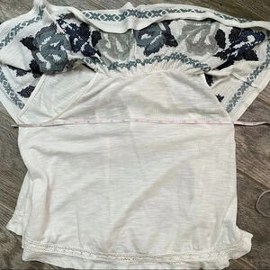 Free people off the shoulder flowy top, Very good condition!light and dark blue embroidery; cream background. Roomy style. See pictures for measurements
