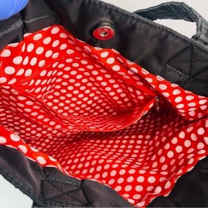 Disney Minnie Mouse Black Quilted Mickey Snap Tote Handbag Purse Handles Zip