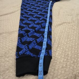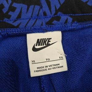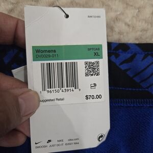 The product is a pair of Nike Dri-Fit knit women's sweatpants in size XL. These mid-rise sweatpants feature a standard fit and are made from a blend of polyester and cotton for comfort and moisture-wicking properties. The pants are in a stylish blue color with the Nike logo as a design element, making them perfect for activewear occasions. Additionally, the sweatpants include pockets for convenience and are part of the Nike Dri-FIT product line, ensuring high-quality performance and durability.