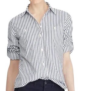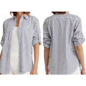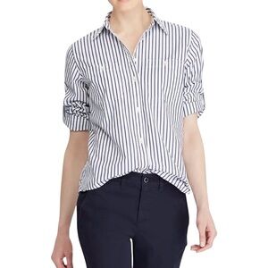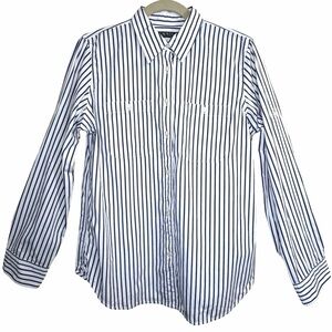 Lauren Ralph Lauren NWT White Cotton Navy Blue Striped Shirt Size Medium