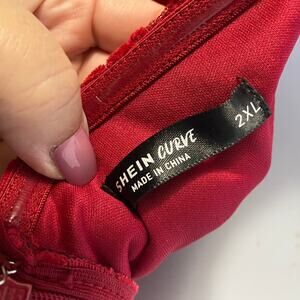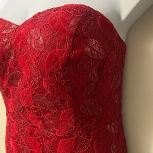 Shein Curve Red Strapless Long Mermaid Gown Red Leaf Lace Sz 2XL