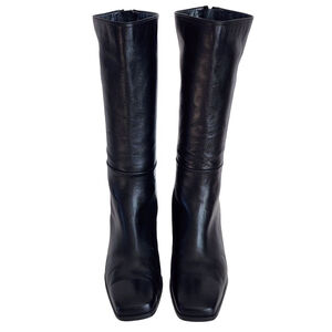 STUART WEITZMAN Square Toe Heeled Mid-Calf Boots Black Leather Zip 6.5
