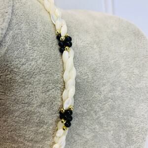 Vintage Pearly Bead Black God Twisted Woven Necklace 17"
