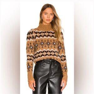 Stylish turtleneck sweater with intricate patterns. Cozy and fashionable design. Perfect for cool weather.