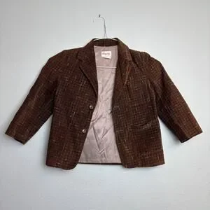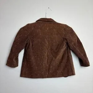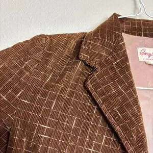 Vintage Barry Boy corduroy blazer for boys in a rich chocolate brown with a unique white grid or windowpane pattern.