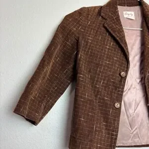 Keywords: Vintage Boys Clothes, 1960s Style, 1970s Style, Corduroy Blazer, Academic, Preppy, Retro Kids, Formal Wear, Windowpane Pattern, Brown Blazer, Mid Century Modern, Little Gentleman, School Uniform, Wedding