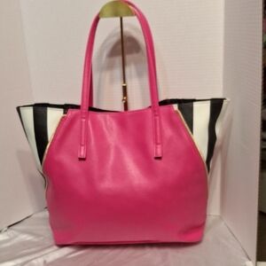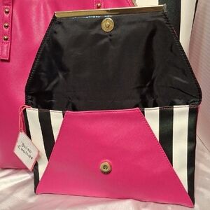 Juicy Couture Vibrant Pink Clutch/Crossbody & Tote Set Black and White Stripes