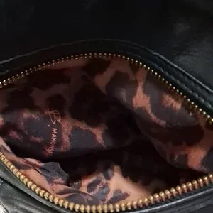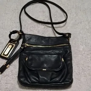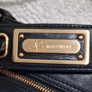 B. Makowsky Black Leather Crossbody Bag with Gold Details
