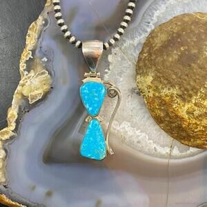 Gary G Sanchez Vintage Sterling Silver 2 Turquoise Decorated Pendant For Women
