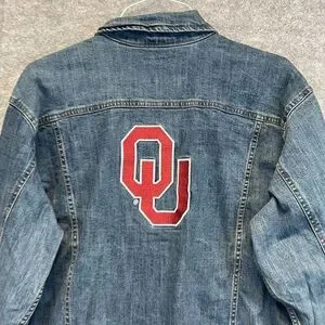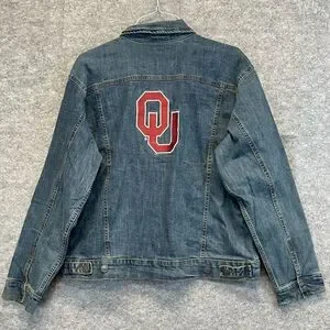 NWT WRANGLER X COLOSSEUM Oklahoma Jean Jacket Women's Large Blue Sooners OU New