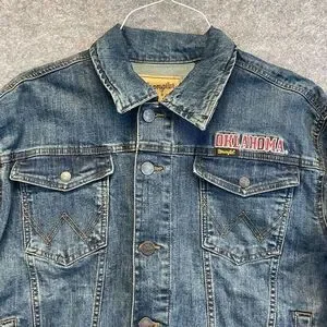 NWT WRANGLER X COLOSSEUM Oklahoma Jacket Women's Large Blue Denim Sooners OU